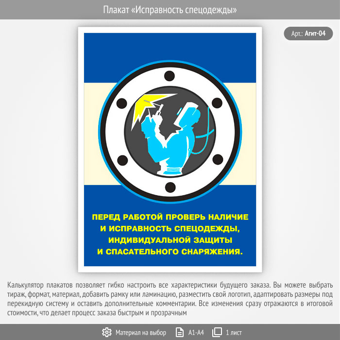 Плакат «Исправность спецодежды» (Агит-04, 1 лист) в Волгограде купить