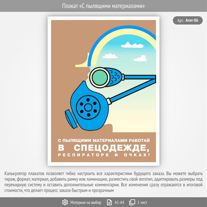 Плакат «С пылящими материалами» (Агит-06, 1 лист) в Волгограде купить