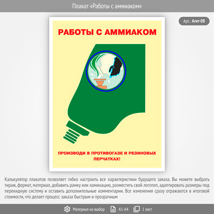 Плакат «Работы с аммиаком» (Агит-08, 1 лист) в Волгограде купить