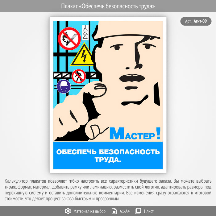 Плакат «Обеспечь безопасность труда» (Агит-09, 1 лист) в Волгограде купить