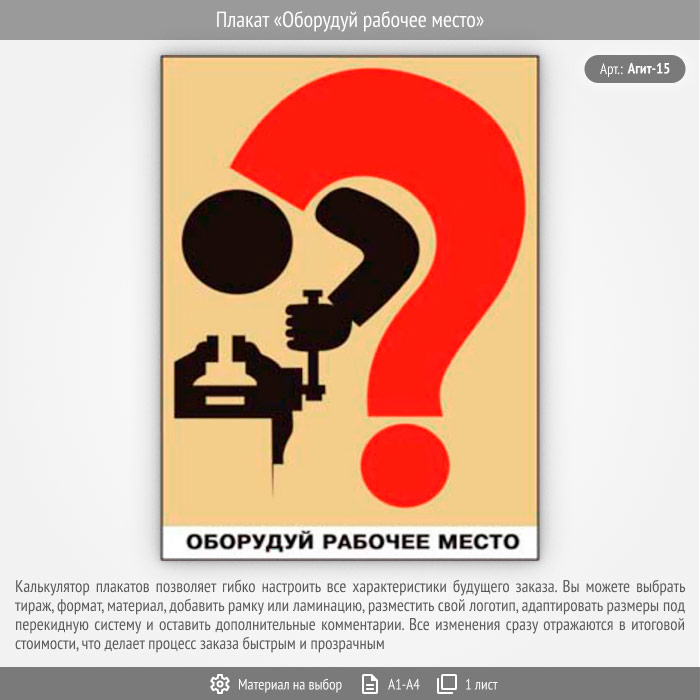 Плакат «Оборудуй рабочее место» (Агит-15, 1 лист) в Волгограде купить