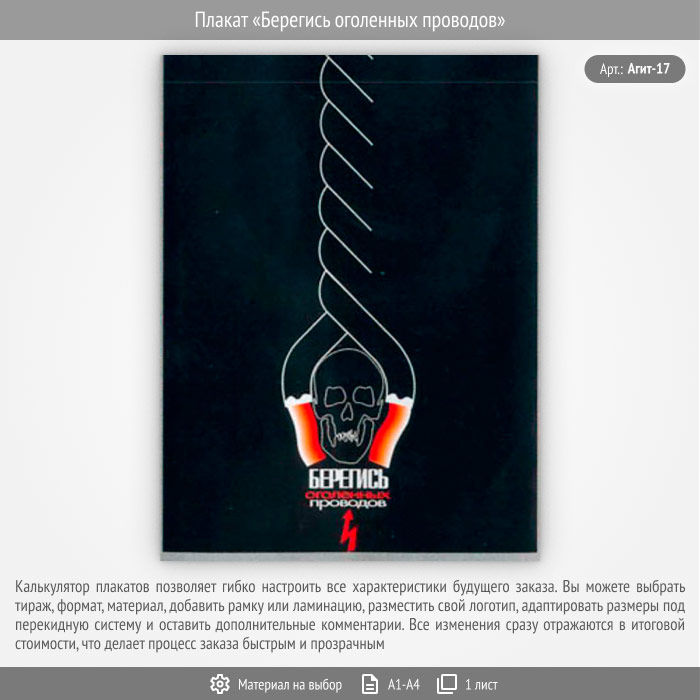 Плакат «Берегись оголенных проводов» (Агит-17, 1 лист) в Волгограде купить