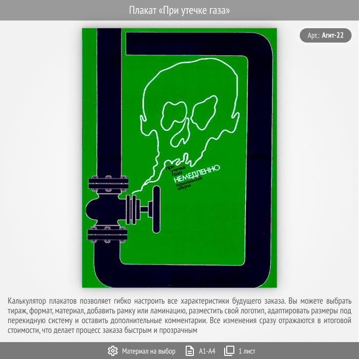 Плакат «При утечке газа» (Агит-22, 1 лист) в Волгограде купить