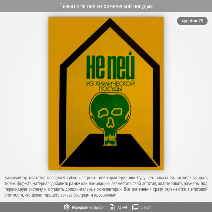 Плакат «Не пей из химической посуды» (Агит-25, 1 лист) в Волгограде купить