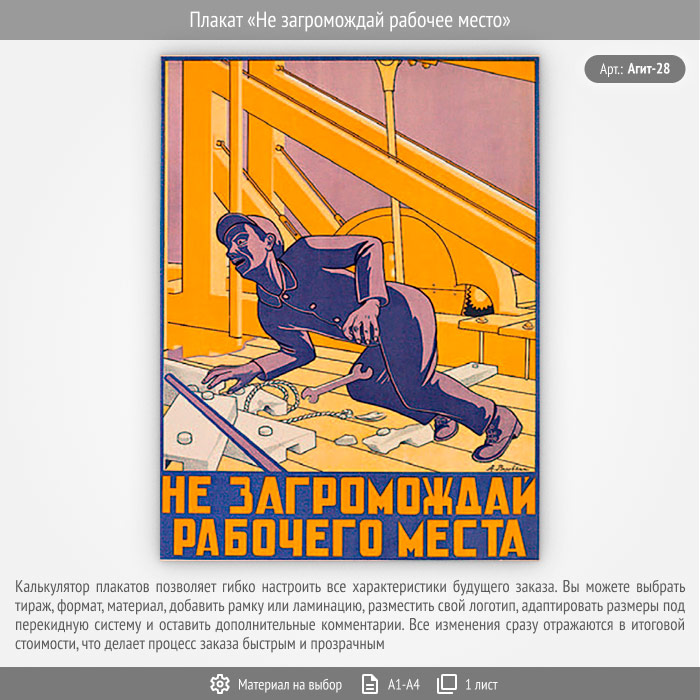 Плакат «Не загромождай рабочее место» (Агит-28, 1 лист) в Волгограде купить