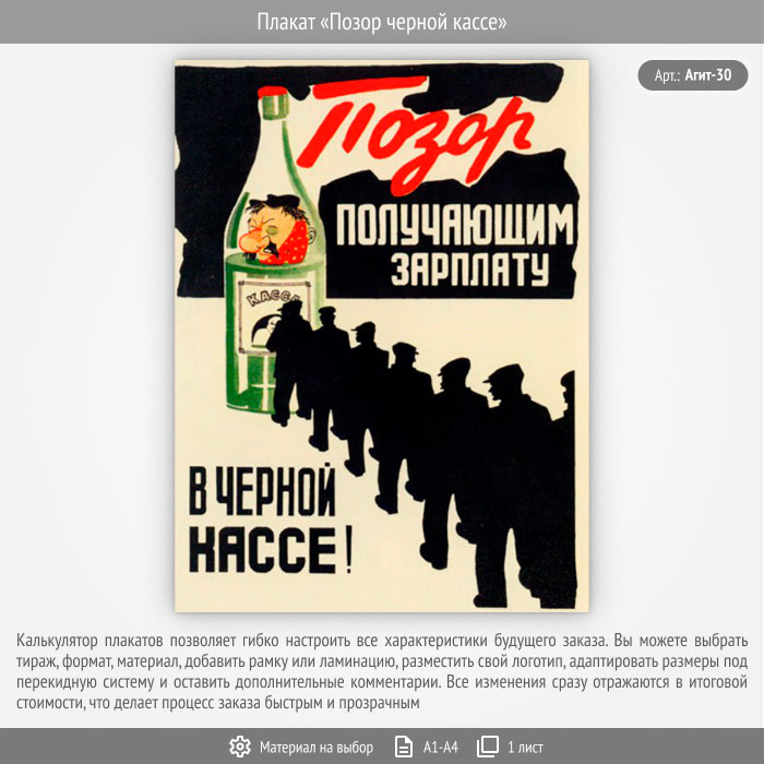 Плакат «Позор черной кассе» (Агит-30, 1 лист) в Волгограде купить