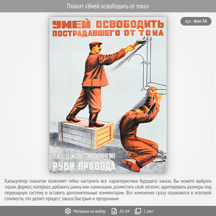 Плакат «Умей освободить от тока» (Агит-34, 1 лист) в Волгограде купить