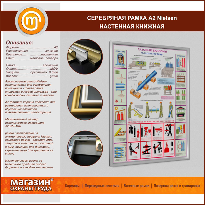 Багетная настенная рамка «Nielsen» А2 формата, книжная, матовое серебро в Волгограде купить