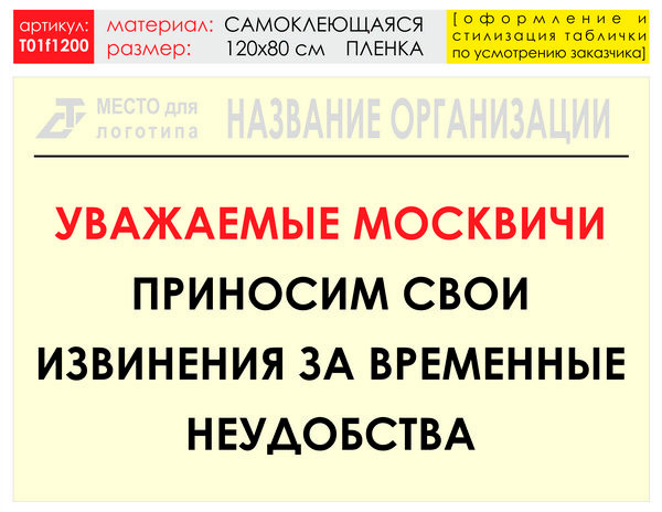 Баннер «Извинения», T01 (самоклеящаяся плёнка, 120х90 см) в Волгограде купить