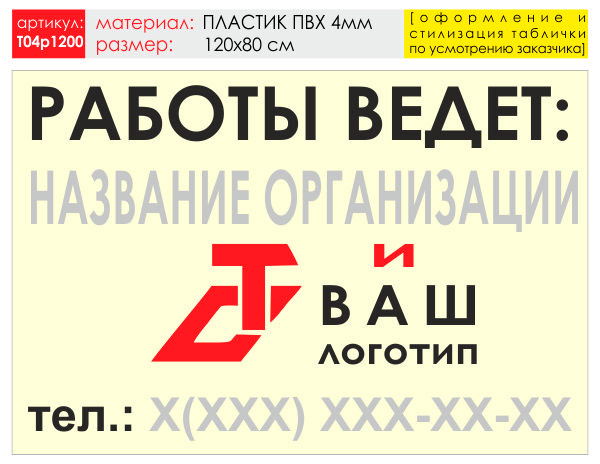Баннер «Работы ведет», T04 (пластик 4 мм, 120х90 см) в Волгограде купить