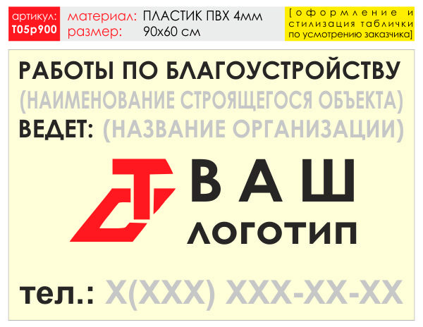 Баннер «Работы по благоустройству», T05 (пластик 4 мм, 90х60 см) в Волгограде купить