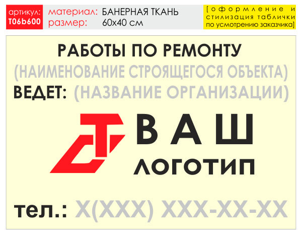 Баннер «Работы по ремонту», T06 (баннерная ткань, 60х40 см) в Волгограде купить