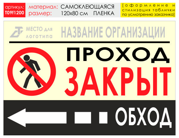 Баннер «Обход слева», T09 (самоклеящаяся плёнка, 120х90 см) в Волгограде купить