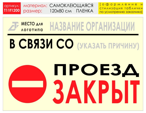Баннер «Проезд закрыт», T11 (самоклеящаяся плёнка, 120х90 см) в Волгограде купить