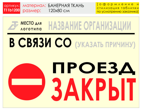 Баннер «Проезд закрыт», T11 (баннерная ткань, 120х90 см) в Волгограде купить