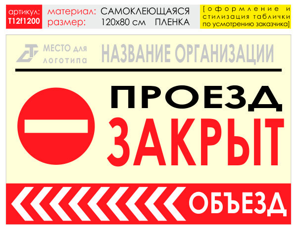 Баннер «Объезд слева», T12 (самоклеящаяся плёнка, 120х90 см) в Волгограде купить