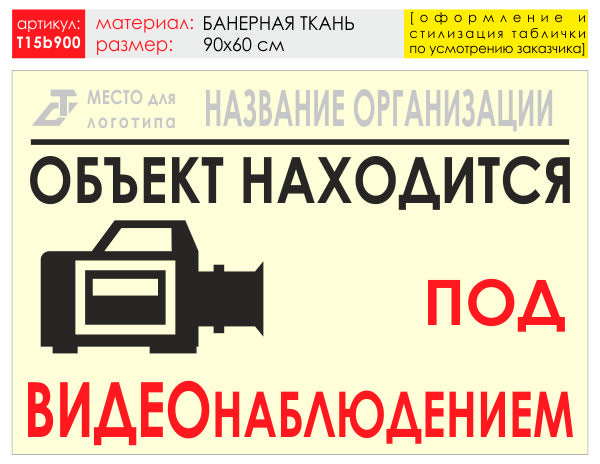 Баннер «Видеонаблюдение», T15 (баннерная ткань, 90х60 см) в Волгограде купить