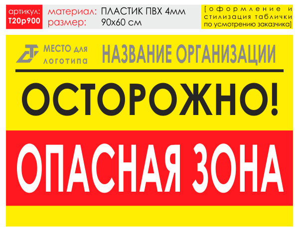 Баннер «Опасная зона», T20 (пластик 4 мм, 90х60 см) в Волгограде купить