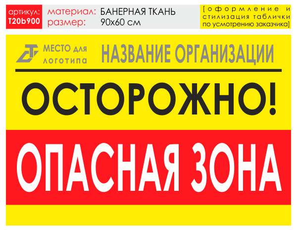 Баннер «Опасная зона», T20 (баннерная ткань, 90х60 см) в Волгограде купить