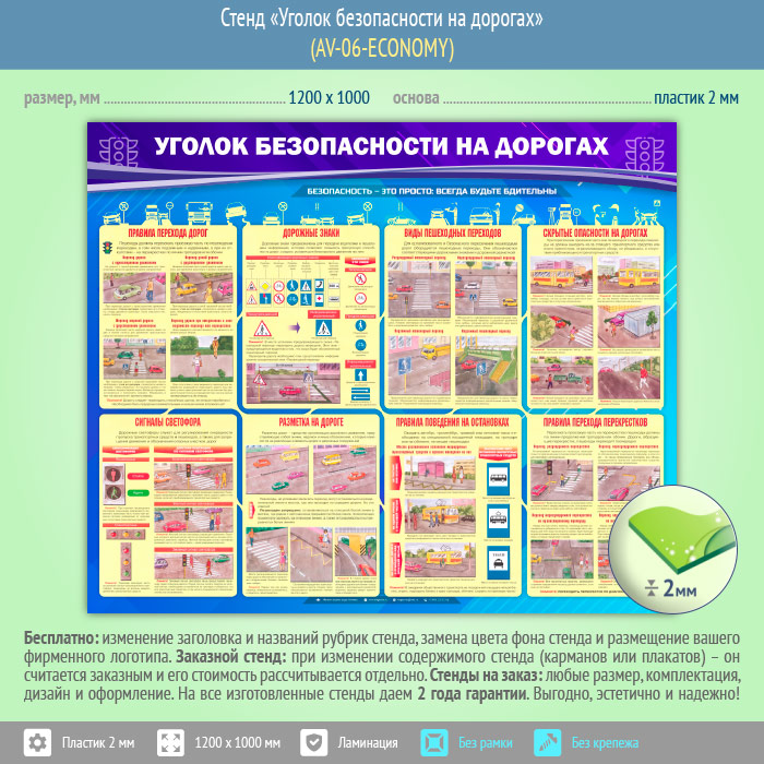 Стенд «Уголок безопасности на дорогах» (AV-06-ECONOMY) в Волгограде купить