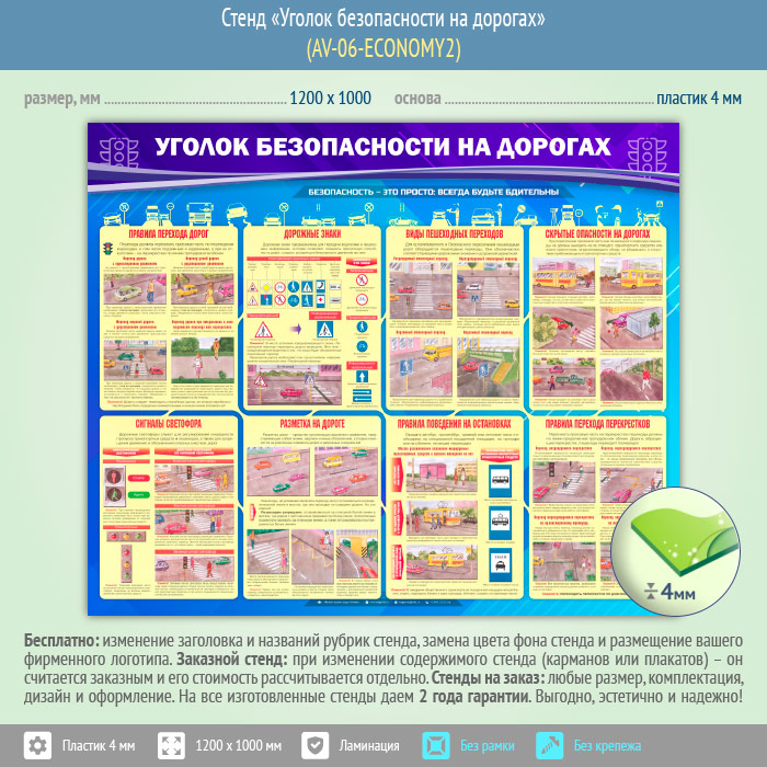 Стенд «Уголок безопасности на дорогах» (AV-06-ECONOMY2) в Волгограде купить
