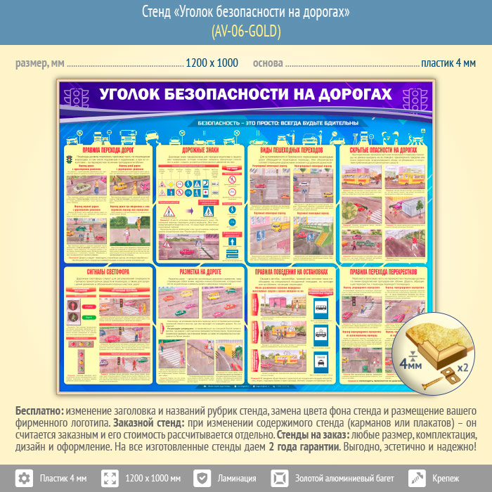Стенд «Уголок безопасности на дорогах» (AV-06-GOLD) в Волгограде купить