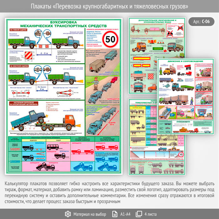 Плакаты «Перевозка крупногабаритных и тяжеловесных грузов» (С-06, 4 листа) в Волгограде купить