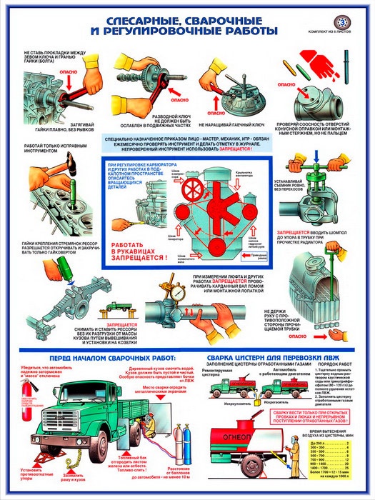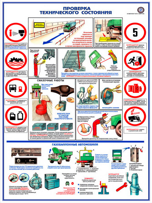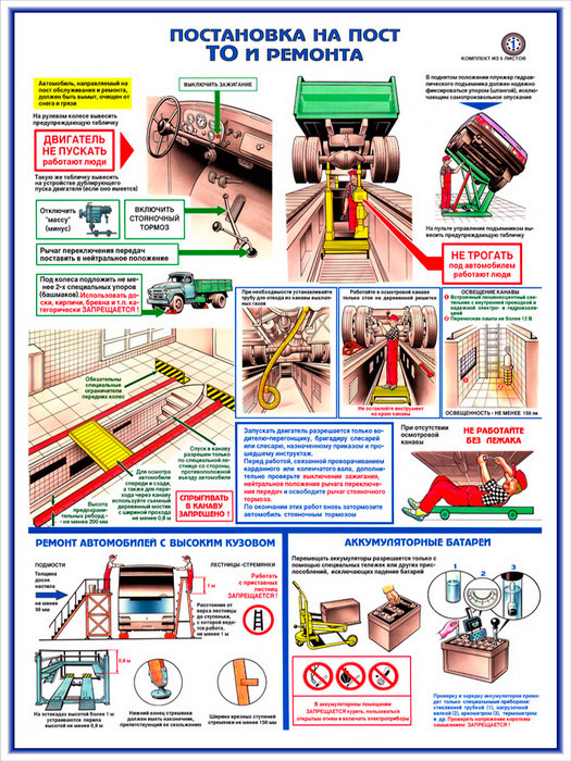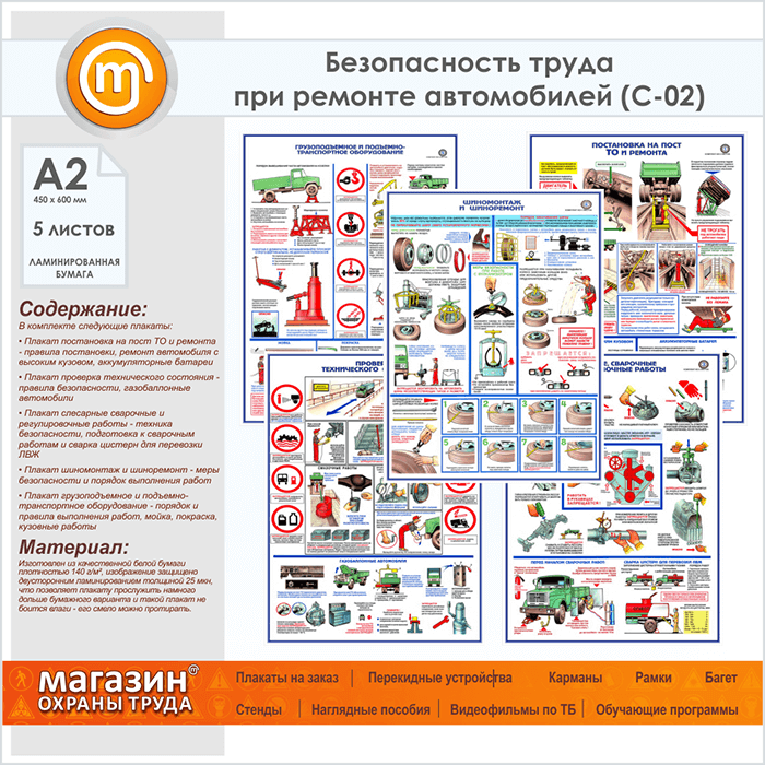 Плакат «Техника безопасности при ремонте автомобилей» (С-02, ламинированная бумага, А2, 5 листов) в Волгограде купить