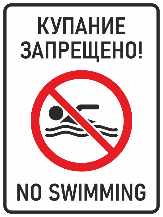 Знак «Купание запрещено! / No swimming», БВ-13 (пластик 2 мм, 300х400 мм) в Волгограде купить