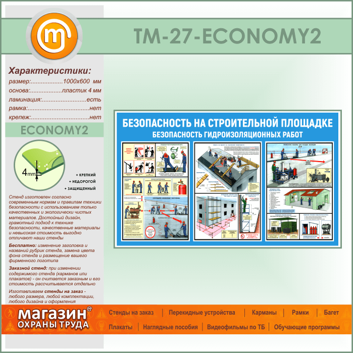Стенд «Безопасность на строительной площадке. Безопасность гидроизоляционных работ» (TM-27-ECONOMY2) в Волгограде купить