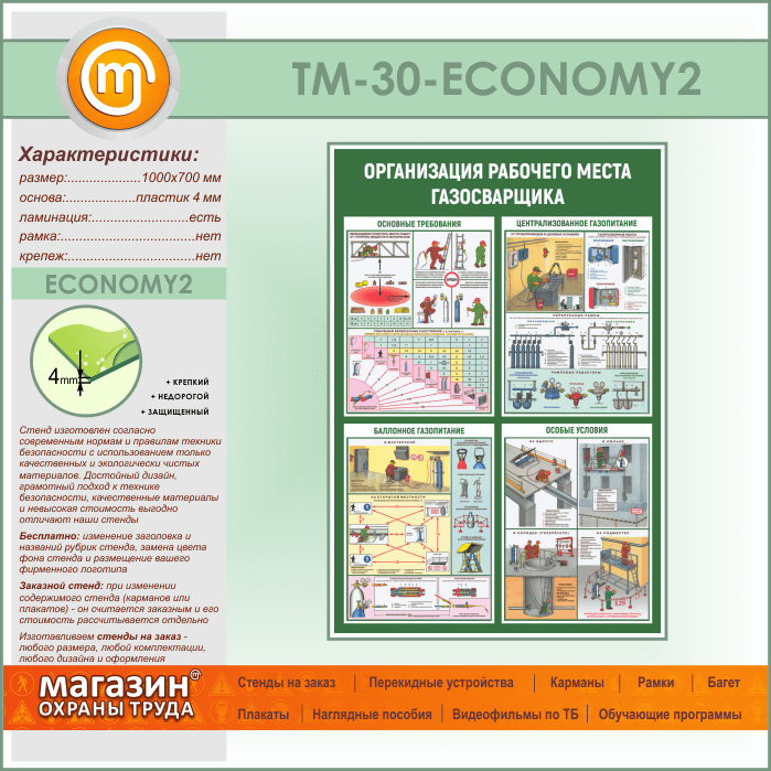 Стенд «Организация рабочего места газосварщика» (TM-30-ECONOMY2) в Волгограде купить