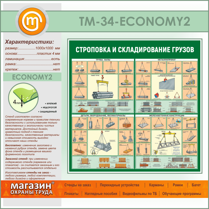 Стенд «Строповка и складирование грузов» (TM-34-ECONOMY2) в Волгограде купить