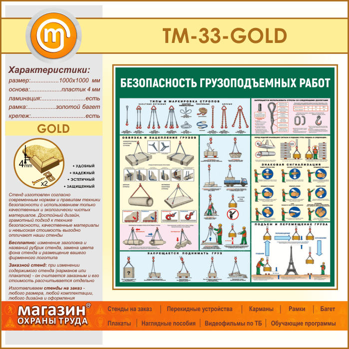 Стенд «Безопасность грузоподъемных работ» (TM-33-GOLD) в Волгограде купить