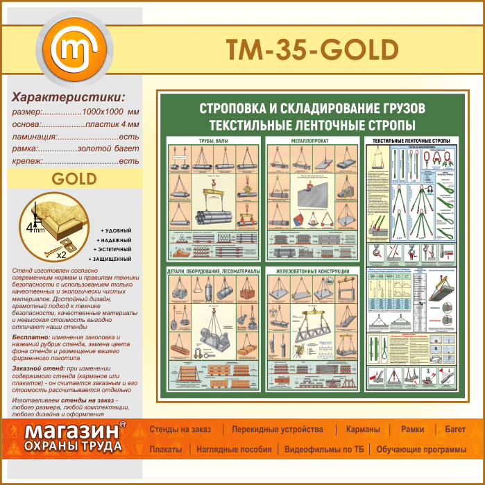 Стенд «Строповка и складирование грузов. Текстильные ленточные стропы» (TM-35-GOLD) в Волгограде купить