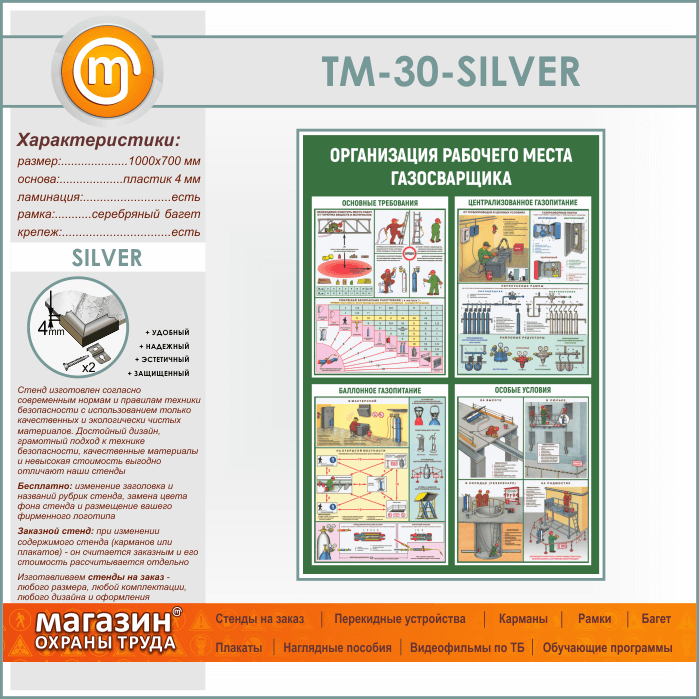 Стенд «Организация рабочего места газосварщика» (TM-30-SILVER) в Волгограде купить