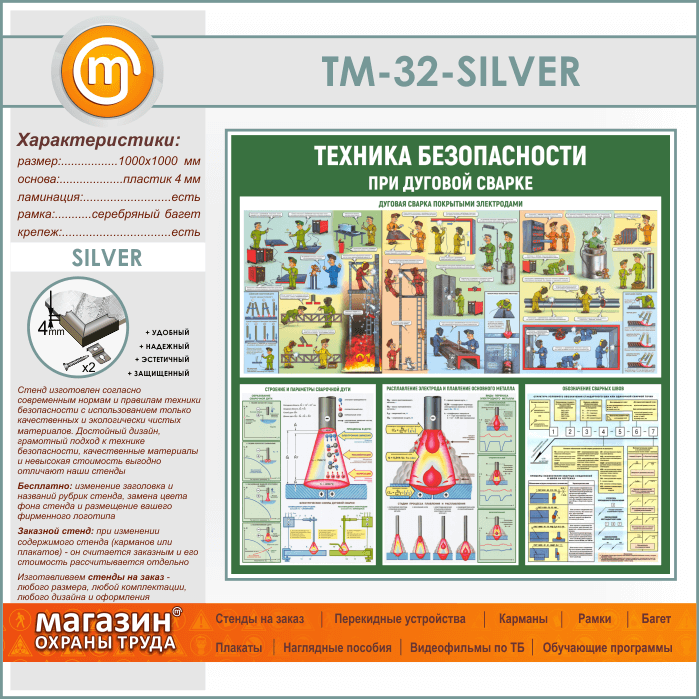 Стенд «Техника безопасности при дуговой сварке» (TM-32-SILVER) в Волгограде купить