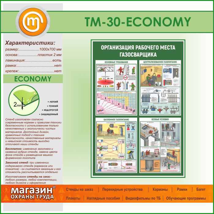 Стенд «Организация рабочего места газосварщика» (TM-30-ECONOMY) в Волгограде купить