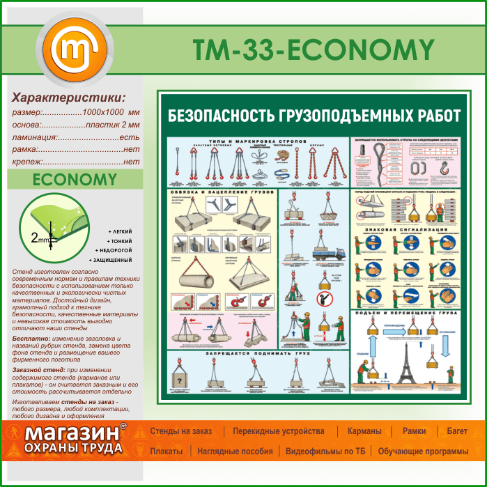 Стенд «Безопасность грузоподъемных работ» (TM-33-ECONOMY) в Волгограде купить