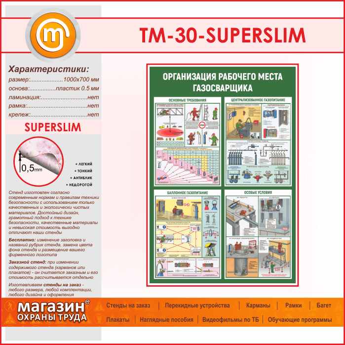 Стенд «Организация рабочего места газосварщика» (TM-30-SUPERSLIM) в Волгограде купить