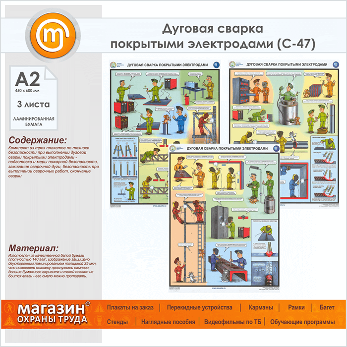 Плакаты «Дуговая сварка покрытыми электродами» (С-47, ламинированная бумага, А2, 3 листа) в Волгограде купить