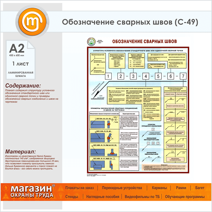 Плакат «Обозначение сварных швов» (С-49, ламинированная бумага, А2, 1 лист) в Волгограде купить