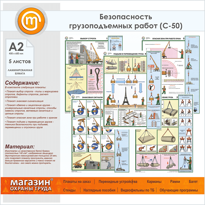 Плакаты «Безопасность грузоподъемных работ» (С-50, ламинированная бумага, А2, 5 листов) в Волгограде купить