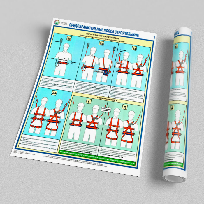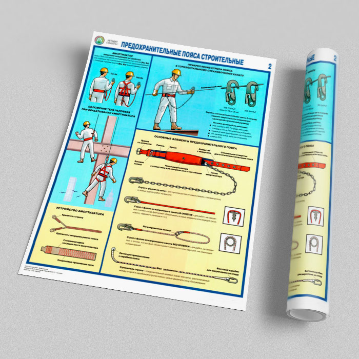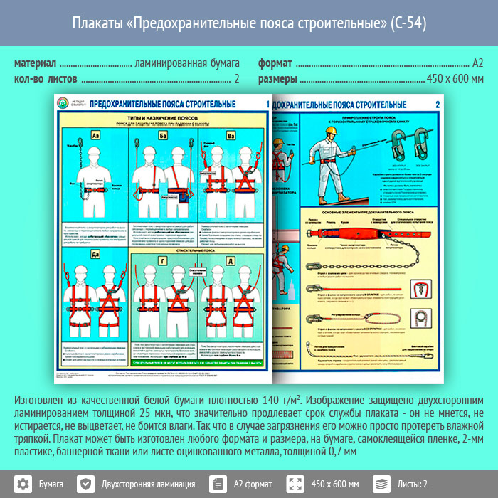 Плакаты «Предохранительные пояса строительные» (С-54, ламинированная бумага, А2, 2 листа) в Волгограде купить