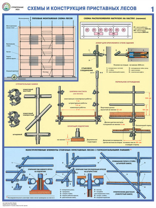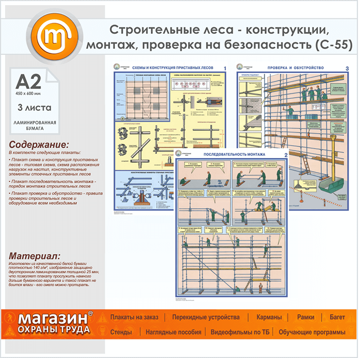Плакаты «Строительные леса - конструкции, монтаж, проверка на безопасность» (С-55, ламинированная бумага, А2, 3 листа) в Волгограде купить