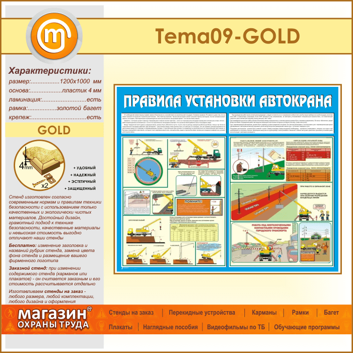 Стенд «Правила установки автокранов» (TM-09-GOLD) в Волгограде купить