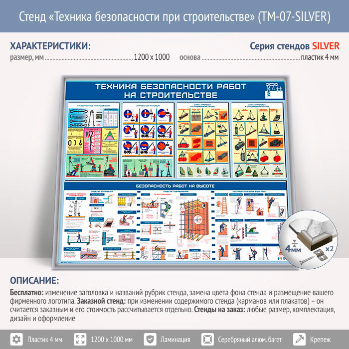 Стенд «Техника безопасности при строительстве» (TM-07-SILVER) в Волгограде купить