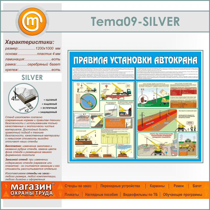 Стенд «Правила установки автокранов» (TM-09-SILVER) в Волгограде купить