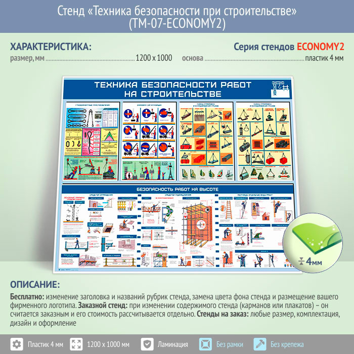 Стенд «Техника безопасности при строительстве» (TM-07-ECONOMY2) в Волгограде купить
