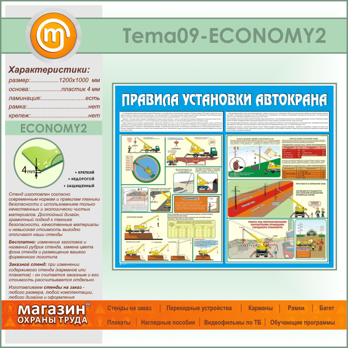 Стенд «Правила установки автокранов» (TM-09-ECONOMY2) в Волгограде купить