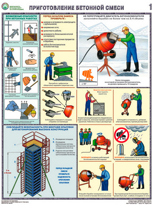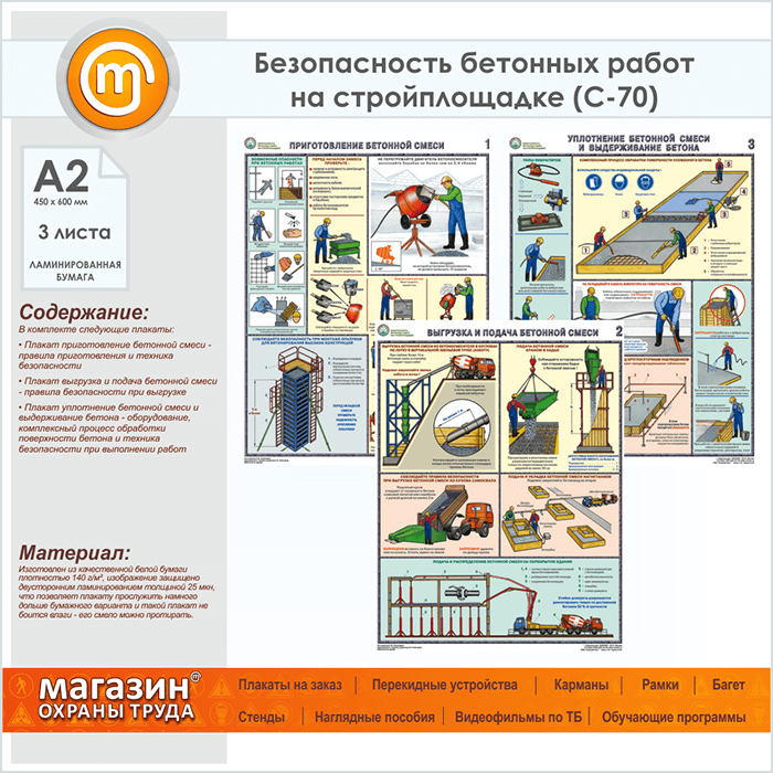 Плакаты «Безопасность бетонных работ на стройплощадке» (С-70, ламинированная бумага, А2, 3 листа) в Волгограде купить